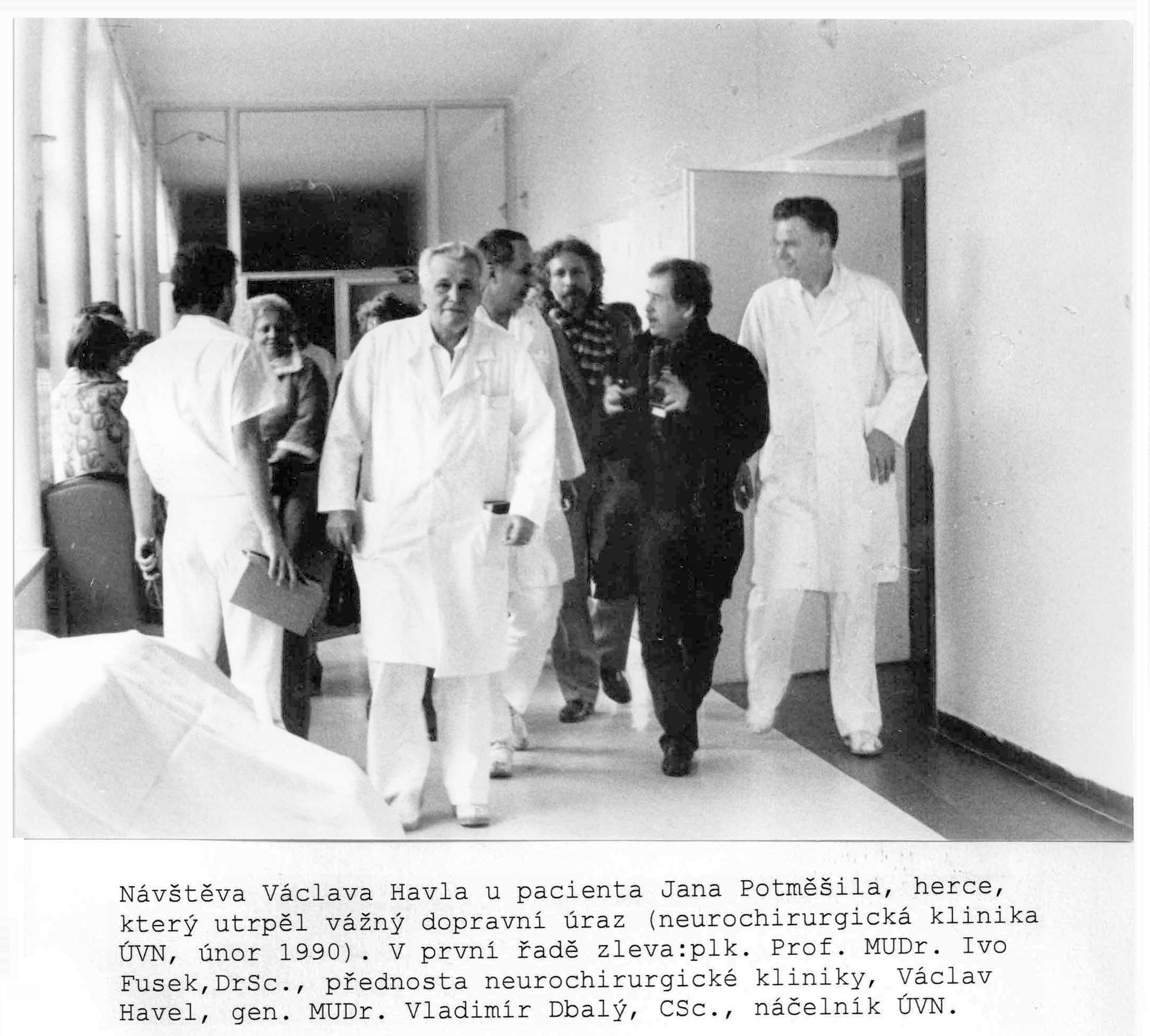Na fotografii vpravo: Václav Havel, prof. MUDr. Ivo Fusek, DrSc. a Gen. MUDr. Vladimír Dbalý, CSC. (1990)